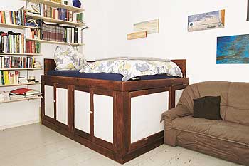 Für Einzimmerwohnungen rät Pernthaller: „Ein Tisch als Essplatz, Kommunikationsort und Arbeitsplatz reicht.“ Er muss groß genug sein, nimmt dann aber immer noch weniger Platz ein als zwei kleine Tische. Auch für andere Fälle hat Pernthaller einen eigenen Entwurf parat – einen rollenden Kubus, der als Wohnzimmertisch sowie als Computertisch fürs Notebook mit integriertem Kleinbüro dienen kann. In verschließbaren Fächern unter der Tischplatte lassen sich Ordner, Drucker und Kabel verstauen. Dank Rollen lässt sich das Möbel einfach in der Wohnung verschieben – je nachdem, als was der Tisch gerade dienen soll. Möbel mit mehreren Funktionen können viele Gesichter haben: Eine Sitzgelegenheit wird mit Tablett obenauf zum Tisch. Dank „Büroschränken“ verschwinden Computer hinter einer Tür. Der Klassiker ist das Bettsofa. Aber hier ist Vorsicht angesagt: Wer beim Kauf spart, spart oft auf Kosten seines Rückens. Schaumstoffmatratzen sind schnell durchgelegen. Und ohne gründlichen Test, wie es sich auf dem ins Auge gefassten Sofa liegt, sollte ohnehin keine Entscheidung fallen. Wichtig ist auch ein integrierter Bettkasten – sonst muss man wieder einen Platz für das Bettzeug finden.
