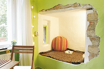 Minimalismus ist an anderen Stellen ratsamer: Wozu ein Garderobenschrank im Flur, wenn ein paar Haken für Mäntel und Jacken reichen? Und auch in der Küche darf gespart werden: „An Sitzplätzen lässt sich bei genauerem Hinsehen oft noch etwas reduzieren“, sagt Doris Haselmann. Die Einrichtungsexpertin hat für die Stiftung Warentest einen Ratgeber zum Möbelkauf geschrieben. „Klapptisch und -stühle können bei Bedarf in der Küche den nötigen Platz freimachen.“ Auf etwas andere Weise hat Tanja sich in ihrer Küche zusätzlichen Platz verschafft: Die Wand zu einer ehemaligen Kammer wurde herausgebrochen, nun befindet sich dort eine gemütliche Sitzecke. Für solch einen Umbau ist allerdings die Erlaubnis des Vermieters nötig.