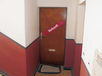 Mit diesem Banner „geschmückt“ sah Roman Czapara seine Wohnungseingangstür der Calvinstraße 21 (das MieterMagazin berichtete über das Haus mehrfach, zuletzt in Ausgabe 9/2012: „Die Mauer muss weg“). Doch der aufmüpfige Mieter denkt auch jetzt nicht daran, sich von der neuen Schikane der Eigentümerin „Terrial Hausverwaltung“ zermürben zu lassen.