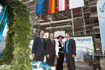 Stolz feierte die Wohnungsbaugesellschaft Degewo Ende September das Richtfest für den ersten kommunalen Wohnungsneubau seit zehn Jahren. Bereits im Mai nächsten Jahres können die ersten Mieter einziehen – sofern sie bereit sind, bis zu 12 Euro warm für eine Wohnung am südlichen Stadtrand auszugeben.