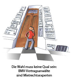 2,2 Prozent der Mitglieder des BMV zogen im Jahr 2012 gegen ihren Vermieter vor Gericht beziehungsweise sind von ihm verklagt worden. Das sind gut 2600 Fälle in dem Jahr. Die Zahl hat sich seit Jahren nicht wesentlich verändert. Am häufigsten geht es um Mängel und andere Vertragsverletzungen, auch Streitigkeiten um Mieterhöhungen und Betriebskosten müssen oft gerichtlich geklärt werden.