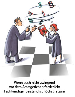 Apropos Anwalt: Theoretisch muss man sich für die erste Instanz beim Amtsgericht gar keinen Rechtsbeistand nehmen. Doch davon ist dringend abzuraten – selbst wenn man mal ein paar Semester Jura studiert hat. Das Prozessrecht ist selbst für Fachleute voller Tücken. Wer jemals eine Gerichtsverhandlung erlebt hat, weiß: Die Urteile und Paragrafen, die sich Richter und Anwälte da um die Ohren hauen, sind Laien meist völlig unbekannt.