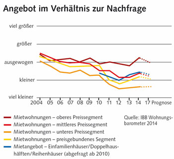 Auf dem Berliner Mietwohnungsmarkt ist in den kommenden Jahren keine Entspannung zu erwarten, so eine der zentralen Aussagen des IBB-Wohnungsmarktbarometers 2014. Der „Gutachterausschuss für Grundstückswerte“ stellt wiederum erneut steigende Umsätze und höhere Preise auf dem Immobilienmarkt fest – verursacht vor allem durch Besitzerwechsel bei Mietwohnhäusern und dem Boom bei Eigentumswohnungen.