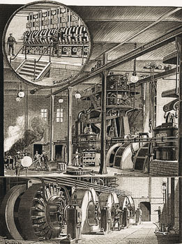 Bereits 1884 war die AG „Städtische Elektricitäts-Werke zu Berlin“ gegründet worden, die als erstes Unternehmen in Europa die öffentliche Stromversorgung aufnahm. Dabei stand die Versorgung von Beleuchtungsanlagen im Vordergrund, wozu der Magistrat der Stadt die Verlegung von Kabeln auf öffentlichem Straßenland erlauben musste. Erst einmal galt es aber, den Bau der Kraftwerkszentrale in der Markgrafenstraße 44 voranzutreiben. Schon Mitte 1885 konnte das erste Kraftwerk mit einer Leistung von 540 Kilowatt in Betrieb genommen werden, das zum Ende des gleichen Jahres genau 28 Kunden mit 5000 Lampen, hauptsächlich in öffentlichen Gebäuden, versorgte. Im Jahr 1915 schließlich übernahm der Berliner Magistrat die gesamten Anlagen der Berliner Elektrizitätswerke: bis dahin sechs Kraftwerke, 7740 Kilometer Kabelnetz, 1044 Kilometer Telefon- und Prüfdrahtnetz zur Versorgung der inzwischen auf 52 347 Abnehmer angewachsenen Kundenzahl.