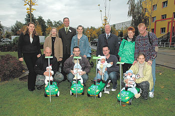Sie lassen sich was einfallen – die Öffentlichkeitsarbeiter der Hellersdorfer Genossenschaft. Unlängst bot man jungen Mietern in einer so genannten „Aktion Nestbau“ an, ihre angemieteten Wohnungen selbst zu renovieren und dafür ein Jahr lang nur die Betriebskosten zu zahlen. Jetzt spendierte das Wohnungsunternehmen für jedes Kind, das Ende 2004 oder im Jahr 2005 zur Welt gekommen ist, einen Baum. Am 25. Oktober wurden die Bäume vor dem Seniorenhaus in der Fercher Straße eingepflanzt. Mitgeholfen haben die Marzahn-Hellersdorfer Direktkandidaten für den Bundestag, Petra Pau (Linkspartei.PDS), Christa Mientus (F.D.P.) und Klaus Mätz (SPD). „Grüne Mitte“-Vorstandsmitglied Andrej Eckhard versicherte, dass diese Aktion Tradition werden wird.