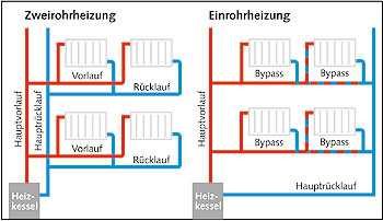 … und so funktioniert eine Zweirohr- und eine Einrohrheizung