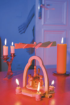 Eigentlich weiß jeder, dass man Kerzen nicht unbeaufsichtigt lassen sollte, insbesondere wenn Kinder in der Nähe sind. Doch kaum klingelt das Telefon, gerät die Weihnachtspyramide in Vergessenheit. „Die meisten Leute sind den Umgang mit offenem Feuer nicht mehr gewohnt und unterschätzen völlig, wie schnell sich ein Brand ausbreiten kann“, sagt der Sprecher der Berliner Feuerwehr, Jens-Peter Wilke. Ein Weihnachtsbaum mit trockenen Nadeln beispielsweise brennt innerhalb von Sekunden wie Zunder. In einer Kettenreaktion werden Lametta, Kugeln, Geschenkpapier und andere brennbare Materialien erfasst, schließlich stürzt der Baum um und die Flammen breiten sich im ganzen Zimmer aus. Der berühmte Eimer Wasser hilft dann auch nicht mehr. Die Feuerwehr empfiehlt daher grundsätzlich, elektrische Kerzen zu benutzen (weitere Tipps im Kasten rechts unten).