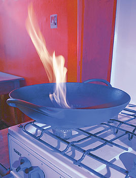 Unachtsamkeit ist die häufigste Brandursache: Überhitzte qualmende Friteuse auf Gasherd