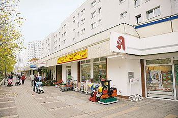 Die vielen leer stehenden Arztpraxen im ersten Stock werden zu Wohnungen umgebaut: Im vorderen, lebendigen Teil der Promenade werden mit geringem Aufwand sogenannte „Starterwohnungen“ für junge Leute geschaffen, im hinteren, ruhigeren Abschnitt werden die Räume für altersgerechtes Wohnen und betreute Wohngemeinschaften hergerichtet. Der Umbau hat schon begonnen und wird schrittweise fortgesetzt. „Damit gewinnt das gesamte Quartier“, erklärt Degewo-Vorstand Frank Bielka, „denn die Marzahner Promenade zählt zu unseren attraktivsten Wohnlagen im Stadtteil Marzahn.“