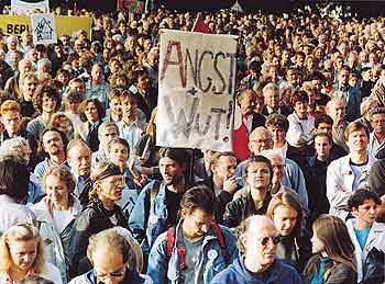 Zwei Jahre später hatten ausgerechnet die im Westen als arme Duckmäuser verhöhnten Ostdeutschen die erste erfolgreiche und überwiegend friedliche Revolution in Deutschland gemacht. Die Ost-Berliner Mauer, Symbol des Eisernen Vorhangs, zerbrach sichtbar am Brandenburger Tor. Berlin stand wieder einmal im Zentrum eines weltpolitischen Ereignisses.