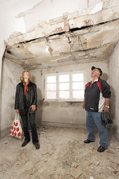 Man habe bereits auf Klagen der Mieter zur Erreichbarkeit reagiert, heißt es dazu bei der Verwaltung, der „Treureal Property Management GmbH“. Die Telefonanlage sei aufgerüstet und eine wöchentliche Mietersprechstunde eingerichtet worden. Auch der Vorwurf, dass die Instandhaltungspflichten vernachlässigt werden, weist Sprecher Heinz Colligs zurück. Doch der Augenschein vermittelt in der Siedlung einen anderen Eindruck: Bröckelnde Balkone, Putzschäden, eine Waschküche, in der die Decke heruntergekommen ist und Dachböden, in die es hineinregnet – das sind deutliche Indizien für eine unterlassene Instandhaltung. Für die Mieter haben die Schäden an Dach und Fassade zudem extrem hohe Heizkosten zur Folge. Die Bewohner berichten auch, dass es in vielen Wohnungen Probleme mit Feuchtigkeit und Schimmel gibt – und das bei Miethöhen von bis zu 350 Euro für eine 42 Quadratmeter große Wohnung.