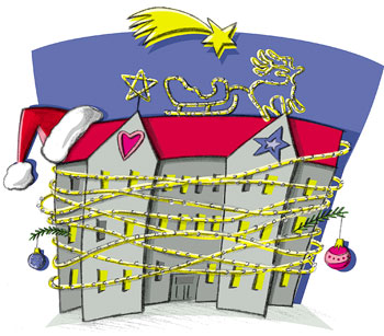 Alle Jahre wieder werden in vielen Mietshäusern Fenster und Balkone weihnachtlich geschmückt. Doch an der Fassade hochkletternde Nikoläuse und blinkende Lichterketten sind nicht jedermanns Sache, insbesondere wenn letztere das Schlafzimmer erleuchten. Kann man sich dagegen wehren? Und muss man die Erlaubnis des Vermieters einholen, bevor man sich ans Dekorieren macht?