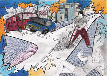 „Lärm in meinem Leben“: Zeichnung der Schülerin Charis Wolf von der Anne-Frank-Realschule in Stuttgart