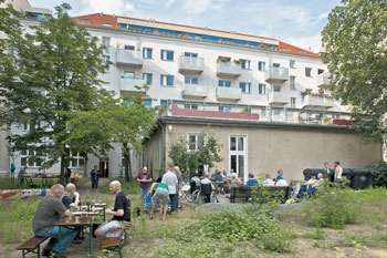 Für Doris, eine von 33 Bewohnern, war dies sogar der ausschlaggebende Grund. Jahrelang war sie auf der Suche nach einem gemeinschaftlichen Wohnprojekt zur Miete. „Ich habe in etlichen Gruppen mitgearbeitet, aber aus allen ist am Ende nichts geworden, meist wegen Finanzierungsschwierigkeiten“, erzählt die 64-Jährige. Über eine Bekannte, die auch hier eingezogen ist, stieß sie dann auf diese Gruppe. Ihre anfängliche Skepsis, als Frau ausgerechnet in ein Schwulenwohnprojekt zu ziehen, verschwand schnell: „Die Atmosphäre ist wirklich sehr angenehm, ich bin positiv überrascht.“ Allmählich entwickeln sich immer mehr gemeinschaftliche Aktivitäten. Über ein Schwarzes Brett können sich die Mieter zu Ausflügen, Grillabenden oder Theaterbesuchen verabreden. Es gibt eine Gemeinschaftsküche, wo gemeinsam gekocht und gegessen wird, und einen Garten, der im nächsten Frühjahr noch mit Grillecke und Gemüsebeeten ausgestattet werden soll.