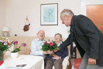 Helmut Müller und seine Frau Anneliese wohnen seit vielen Jahren in einer Genossenschaftswohnung in Köpenick. Mietrechtliche Probleme tauchten bisher nie auf, die Genossenschaft ist sehr zuvorkommend und behebt Mängel prompt. Dennoch entschied man sich vor elf Jahren, dem Mieterverein beizutreten – mit 89 Jahren. Als der BMV-Vorsitzende Edwin Massalsky Herrn Müller kürzlich zum 100. Geburtstag gratulierte, erfuhr er auch den Grund. „Ich finde es wichtig, dass es eine starke Mietervertretung gibt“, erklärte Helmut Müller. Er selber hat zwar nie eine Beratung oder gar eine gerichtliche Vertretung gebraucht, doch seine Enkel haben in Prenzlauer Berg rücksichtslose Modernisierungen und Mieterhöhungen erlebt. „Daher möchte ich den Mieterverein unterstützen“, meinte der Jubilar, dessen Frau demnächst ebenfalls den 100. Geburtstag feiert.