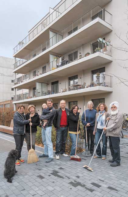 Bei dem durch eine Planungs- und Baugemeinschaft errichteten Neubau in der Eisenzahnstraße 38 in Wilmersdorf wurden die Prinzipien des Universal Designs angewandt. Die 31 Wohnungen, 60 bis 168 Quadratmeter groß, in den sechs Geschossen sind für alle Menschen ohne weitere Anpassungen nutzbar. Stufenlose Eingänge, Lichtschalter in Türnähe, schwellenlose Wohnungen, bodengleiche Duschen, breite Türen und vieles mehr garantieren einen konstanten Wohnkomfort. Die Trennwände können versetzt werden, wenn sich die Wohnsituation der Bewohner ändert. Ein Garten im Blockinnern, ein Gemeinschaftsraum für Fitness und Feste im Erdgeschoss sowie ein Dachgarten dienen als Begegnungsstätten.