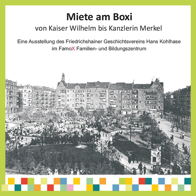 Über 100 Jahre Wohn- und Mietgeschichte am Boxhagener Platz in Friedrichshain zeichnet die Ausstellung „Miete am Boxi“ nach. Das einstige Arbeiterviertel mit heruntergekommenen Altbauten hat sich in den 2000er Jahren rasant zu einem Szenekiez und Brennpunkt der Gentrifizierung entwickelt.